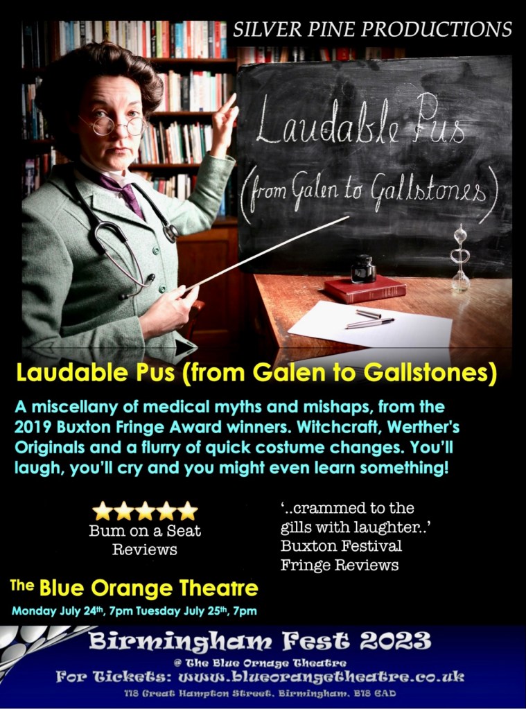 Thank you so much to everyone at Birmingham Fest 2023 and particularly to everyone at the gorgeous Blue Orange Theatre for hosting Laudable Pus (from Galen to Gallstones).