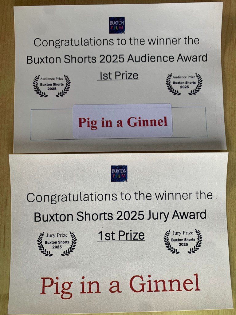 We are honestly and genuinely, completely and utterly blown away that PIG IN A GINNEL won both the Audience Prize and the Jury Prize, at this afternoon’s Buxton Shorts.